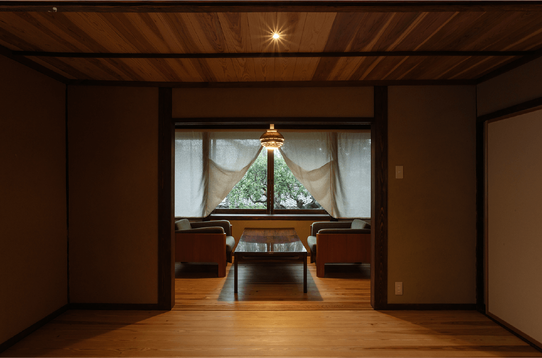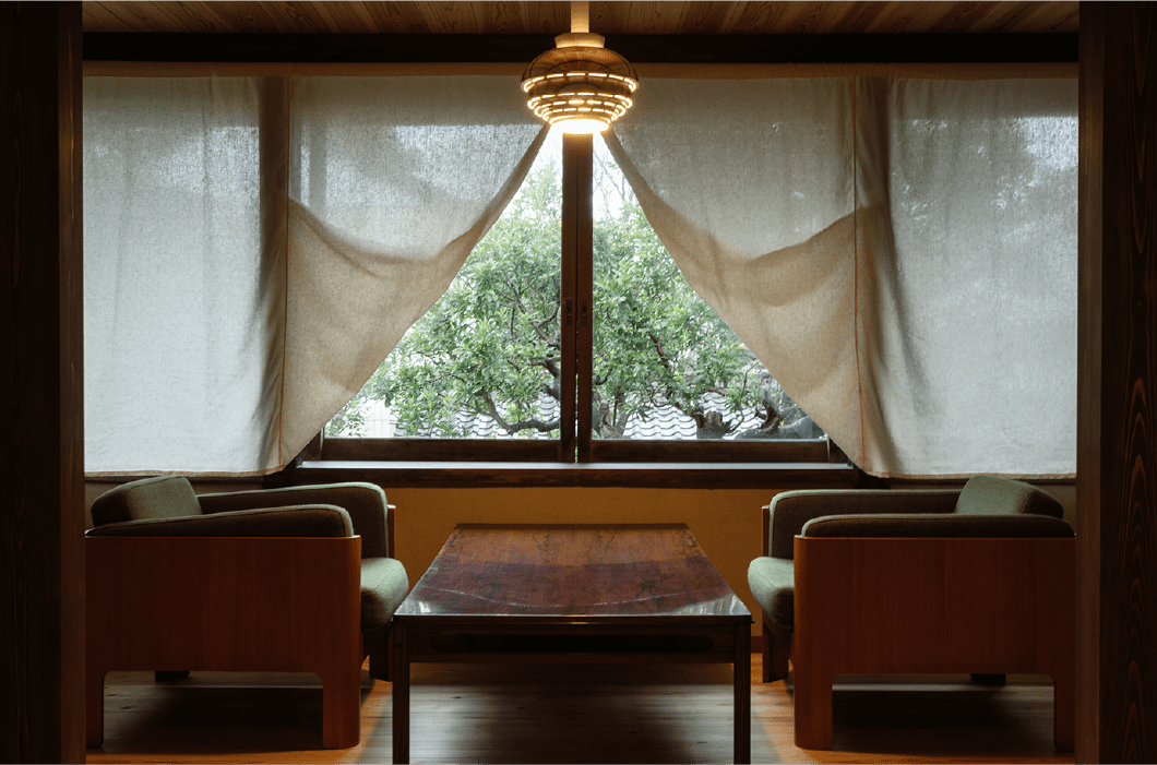 窓からは出雲地方特有の屋根瓦「左桟瓦」を