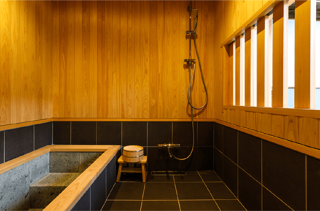 - 石と檜のお風呂