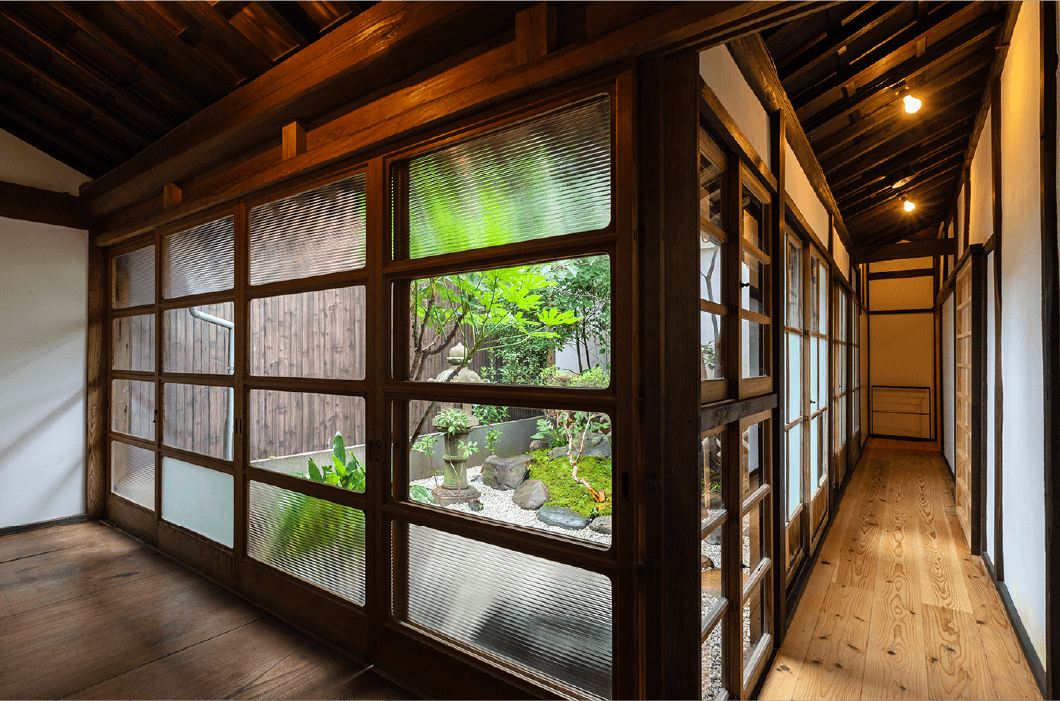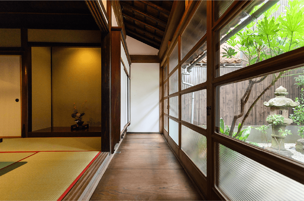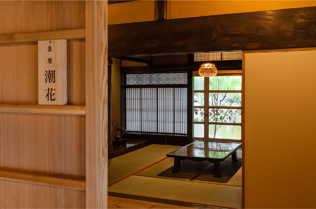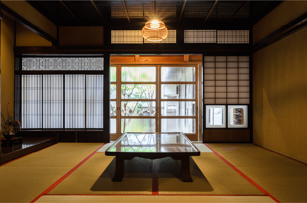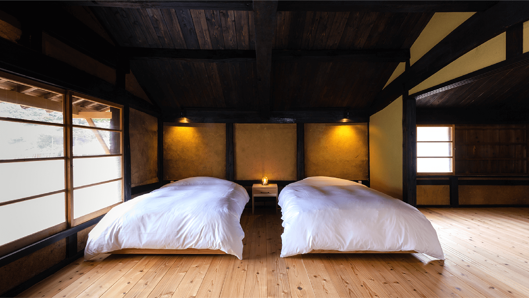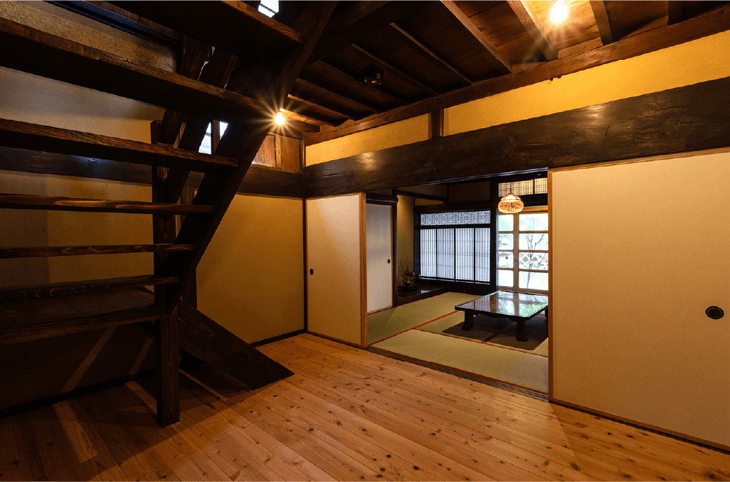 客室には太い梁や日本建築の美を取り入れた