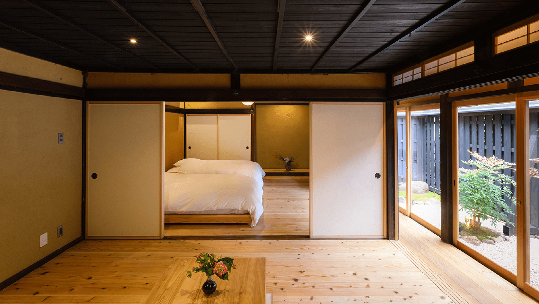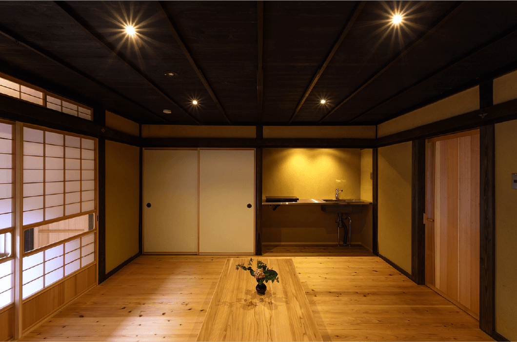 「右舷」は1階に。掘り炬燵のある居間と寝室、