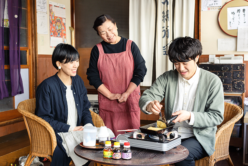 ここでは、店に並ぶ醤油を使ったミニクッキングが体験でき、だし巻き卵、うどんのどちらかを作ることができます。