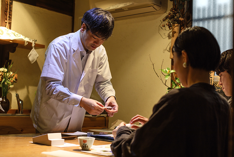 ここでは、生姜糖の板を割り、かけらを包装紙に包みパッケージングする体験ができます。