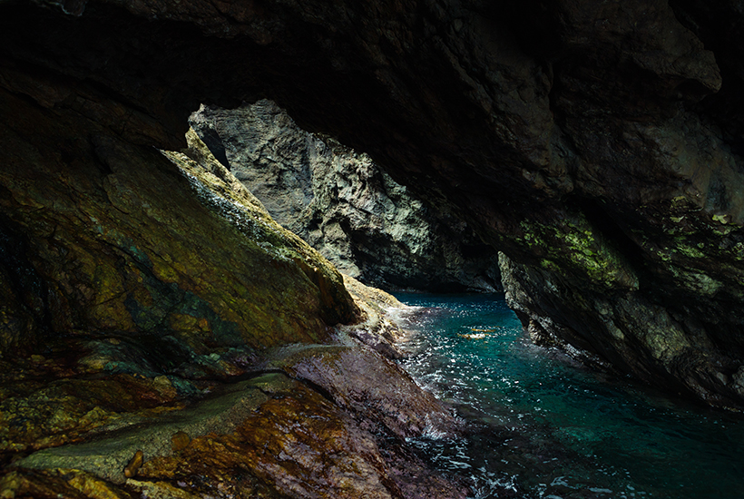 さらに、ワンランク上のコースでは、神秘的な洞窟に上陸して岩肌を歩くなど、アクティブな体験ができます。